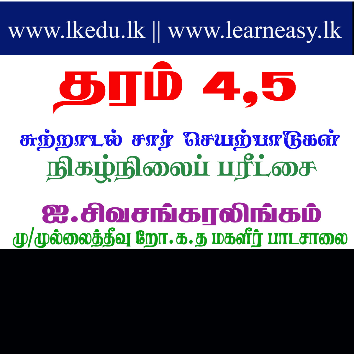 M/Mullaithivu Hospital I. Sivasankaralingam, Teacher of Girls School has published the actual exam (03.11. 2021) for the students of Grade 4, 5 for the subject of environmental activities.